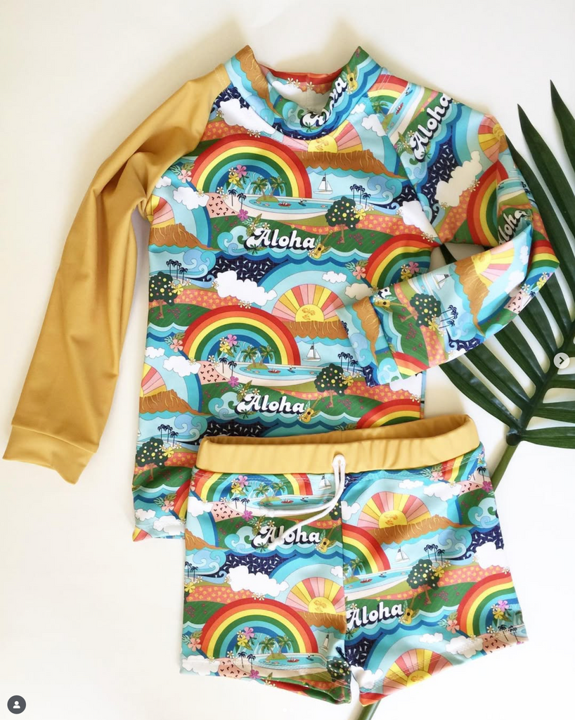 Our classic rash guard top pairs beautifully with any of our swim bottoms. Try it with our Papaya Boards for full sun protection and easier bathroom breaks vs a traditional one piece style.